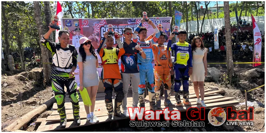 Enrekang, Warta Global ud – Kejuaraan Daerah (Kejurda) Bhayangkara Grasstrack Motocross 2025 resmi ditutup dengan meriah di Sirkuit Garutuk, Kelurahan Kalosi, Kecamatan Alla, Kabupaten Enrekang, Minggu (20/7/2025). Ajang balap motor yang digelar dalam rangka HUT Bhayangkara ke-79 ini menyedot perhatian ribuan penonton dan berjalan sukses selama dua hari.
