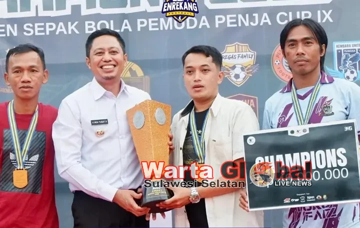 Enrekang, Warta Global.id – Turnamen sepakbola Penja Cup IX resmi berakhir, Makmur Jaya FC keluar sebagai juara usai menumbangkan Regas Kunyi dengan skor meyakinkan 3-1 di laga final. Pertandingan berlangsung meriah di Lapangan Djanggo Penja, Desa Karueng, Enrekang, Rabu 23 Juli 2025.