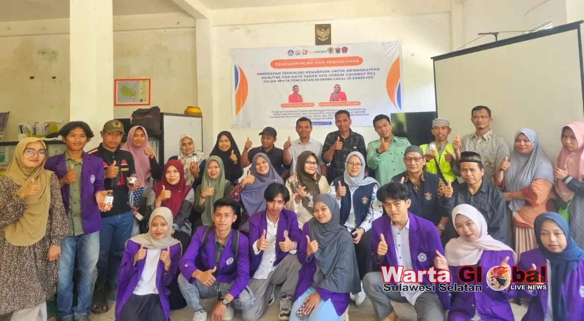 Enrekang, Warta Global.id - Upaya memperkuat ekonomi lokal berbasis potensi kelapa terus digalakkan melalui kolaborasi antara Universitas Muhammadiyah Enrekang (Unimen) dan Universitas Hasanuddin (Unhas). Kedua perguruan tinggi ini melaksanakan kegiatan pendampingan, penyuluhan, serta penyerahan alat dan teknologi pemurnian Virgin Coconut Oil (VCO) kepada masyarakat Desa Tungka, Kabupaten Enrekang, Sabtu (17/10).