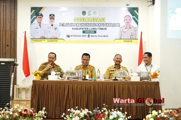Lutim, wartaglobalsulsel.id - Dalam upaya menetapkan arah kebijakan dan strategi pengelolaan kependudukan yang terpadu dan berkelanjutan, maka Pemerintah Kabupaten Luwu Timur melalui Dinas Pengendalian Penduduk dan Keluarga Berencana (DPPKB) menggelar Sosialisasi Penyusunan Peta Jalan Pembangunan Kependudukan (PJPK) Tahun 2025–2029.