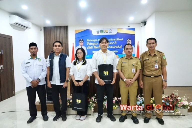 Lutim,sulselwartaglobal.id - Guna meningkatkan kompetensi dan profesionalisme tenaga kerja konstruksi sekaligus memperkuat penerapan sistem keselamatan dan kesehatan kerja (K3) di sektor konstruksi, maka Pemerintah Kabupaten Luwu Timur menggelar Bimbingan Teknis (Bimtek) dan Uji Sertifikasi Petugas, Supervisor, serta Ahli Muda K3 Konstruksi, di Aula Wisma Trans, Senin (27/10/2025).