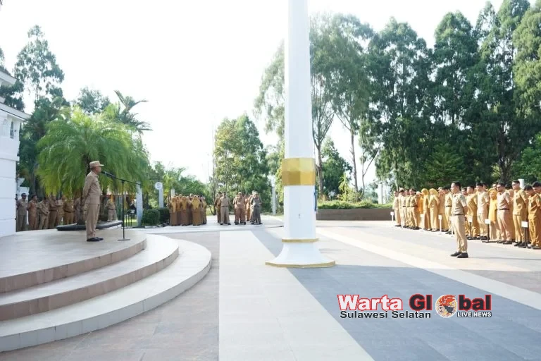 Lutim,wartaglobalsulsel.id – Asisten Perekonomian dan Pembangunan (Asisten II), Masdin memimpin apel pagi yang diikuti oleh seluruh pejabat eselon II, III, IV, staf PNS, PPPK, serta tenaga upah jasa yang digelar di halaman Kantor Bupati Luwu Timur, Senin (20/10/2025).