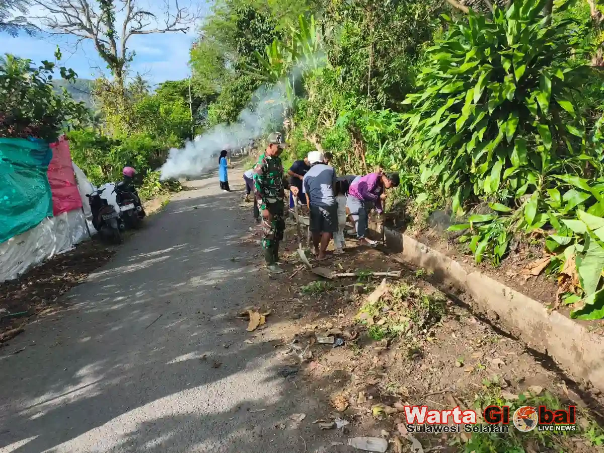 Enrekang,Warta Global.id – Dalam upaya menjaga kebersihan lingkungan serta mencegah terjadinya banjir, Babinsa Kelurahan Kalosi Koramil 1419-04/Alla, Sertu Muh. Tahir, bersama masyarakat melaksanakan kegiatan gotong royong pembersihan drainase dan bahu jalan, bertempat di Pasanggarahan Garutuk, Lingkungan Kalosi Barat, Kelurahan Kalosi, Kecamatan Alla, Kabupaten Enrekang. Jumat 10/04/2026